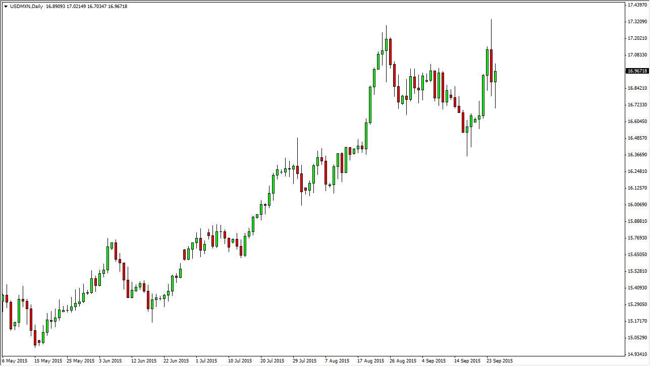 Ultimately, if you mind that the Mexican peso is highly correlated to the price of crude oil. This of course is because many of the oil rigs in the Gulf of Mexico are actually Mexican not American. Granted, the Americans are starting to produce more of their own oil, but at the end of the day most traders will use the Mexican peso as a proxy for not only Latin America, but the petroleum markets themselves. As the price of oil falls, it makes sense that demand for the Mexican peso does as well.