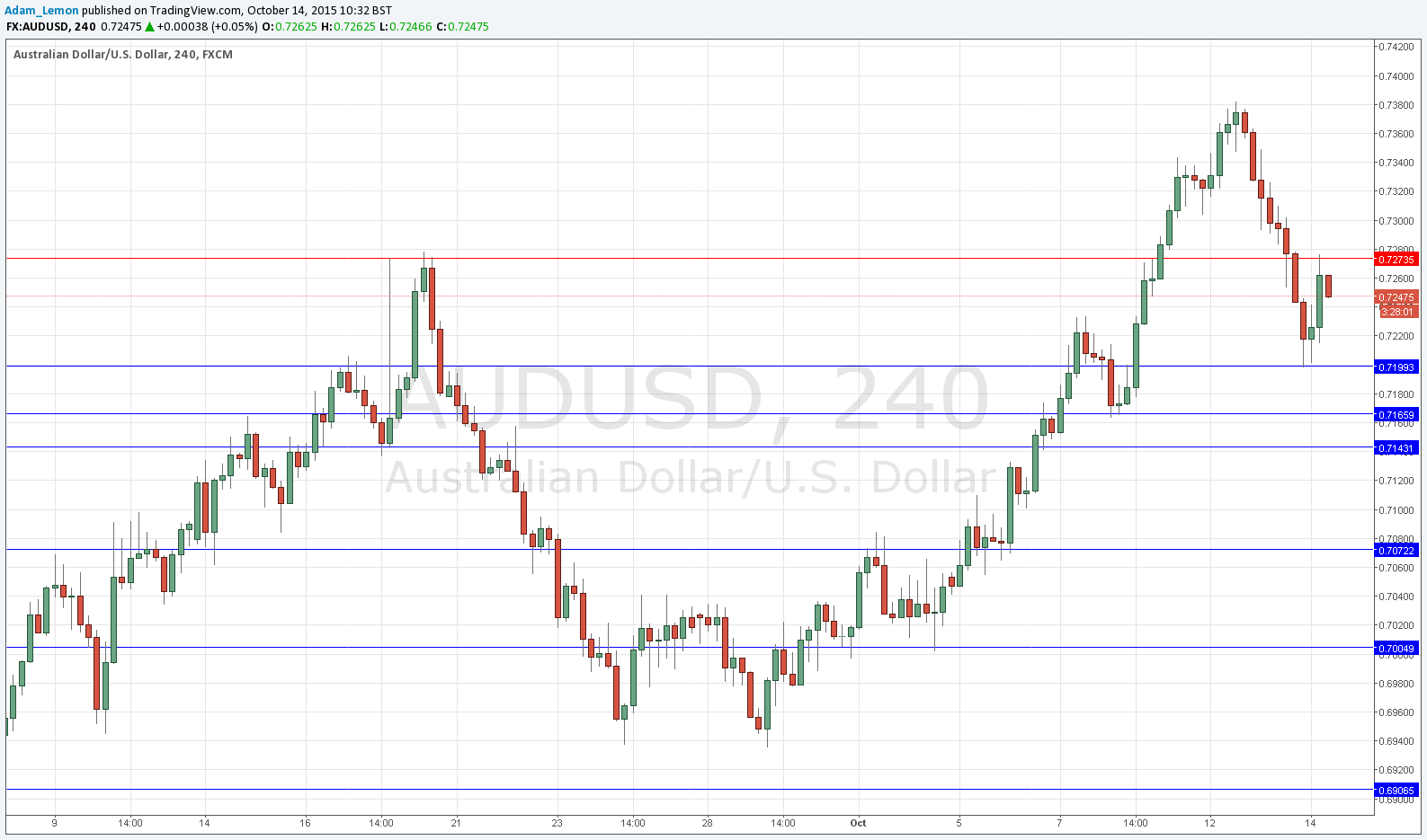Yesterday’s signals may have produced a losing long trade following the bullish engulfing candle formed at 0.7274. There was no bullish price action at 0.7234.