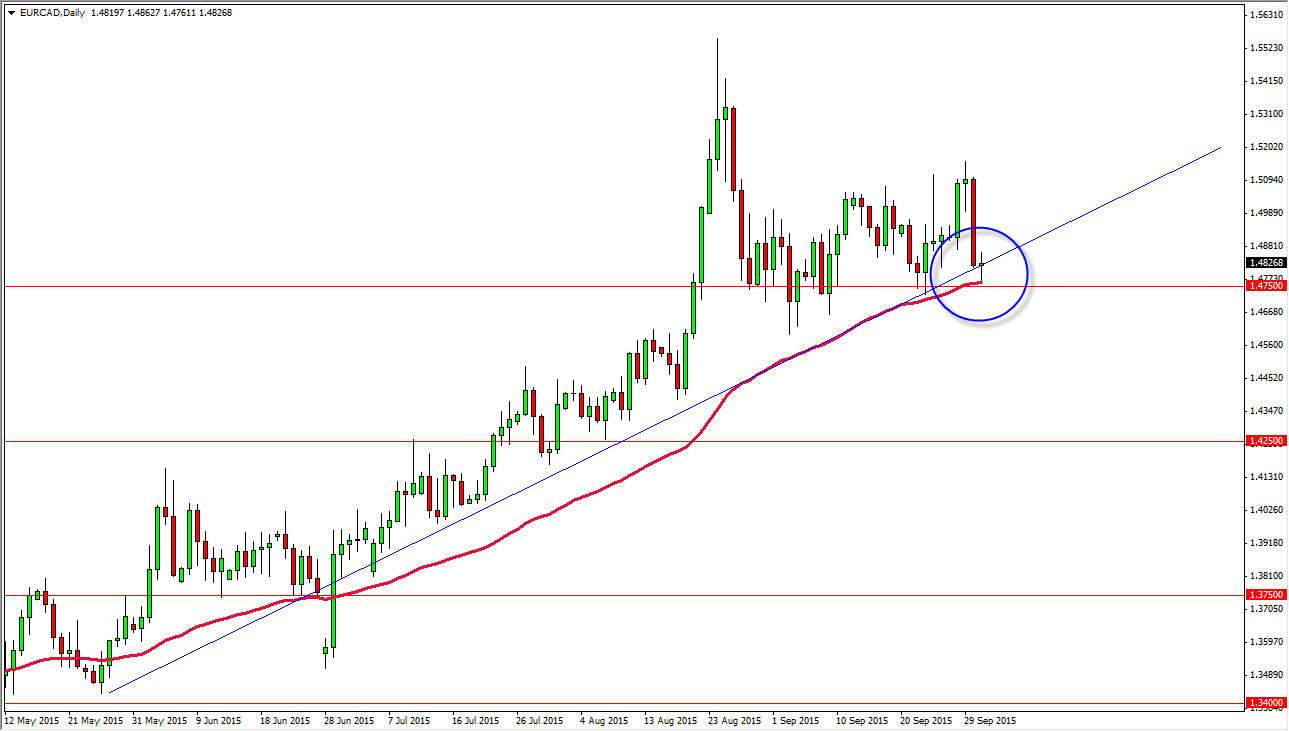 The EUR/CAD pair initially fell during the course of the session on Thursday, but found enough support near the 1.4750 level to turn things back around and form a nice-looking hammer. With that being the case, the market looks as if the buyers are going to continue to find interest in this area. On top of that, you can see that I have a nice uptrend line marked on this chart, as we have seen so much buying pressure over the longer term. However, the reality is that it is a market that is a steady in slow mover, but it is a mover in one direction over the long-term nonetheless.