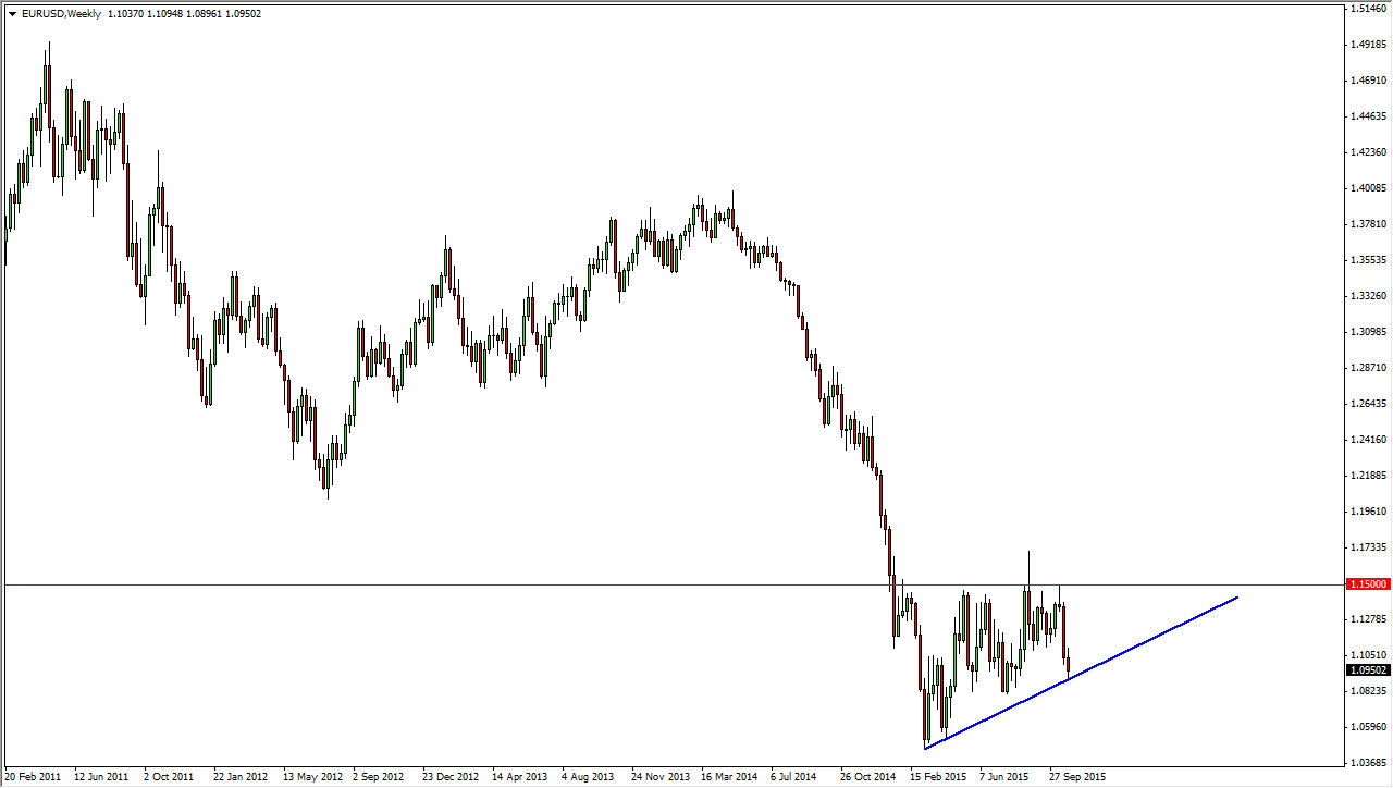 The EUR/USD pair has recently fallen in response to the European Central Bank suggesting further stimulus could be coming. This being the case, at the time of writing we are testing the bottom of a potential ascending triangle. This is a market that features a couple of central banks that are doing whatever they can to avoid stronger currency. The US dollar has been stronger over the longer term, so this point in time you have to draw a line in the sand as it were in order to trade this market.