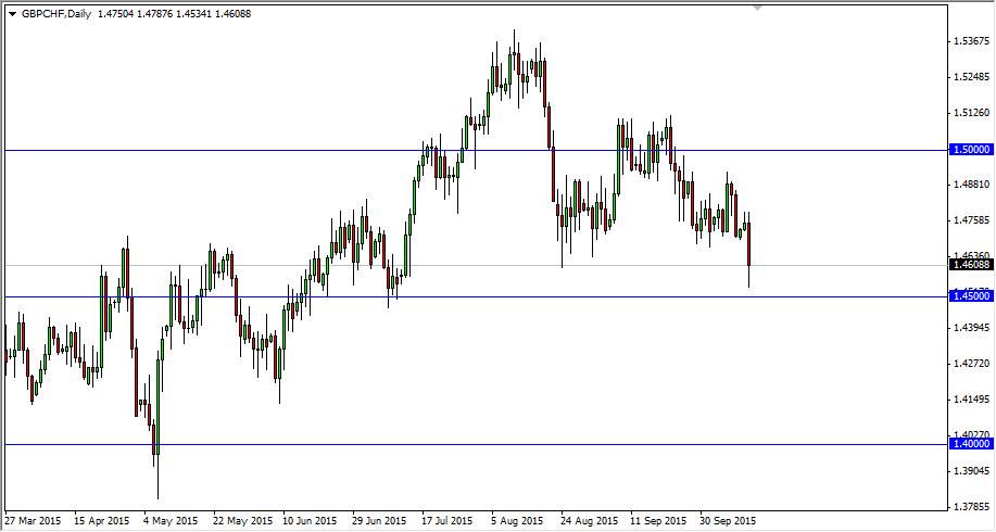 With that being the case, if we break down below the 1.45 level that would of course change my mind completely. I do recognize that this pair has broken down significantly lately, so I think that we should see a bit of a bounce as the market may have gotten ahead of itself. However, all over the Forex world you can see that the British pound is rather soft, and as a result it would not surprise me at all at this market breaks down.