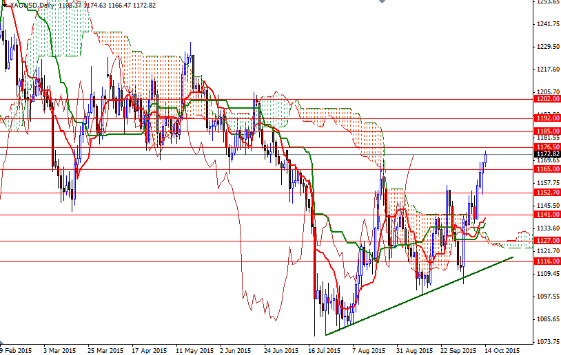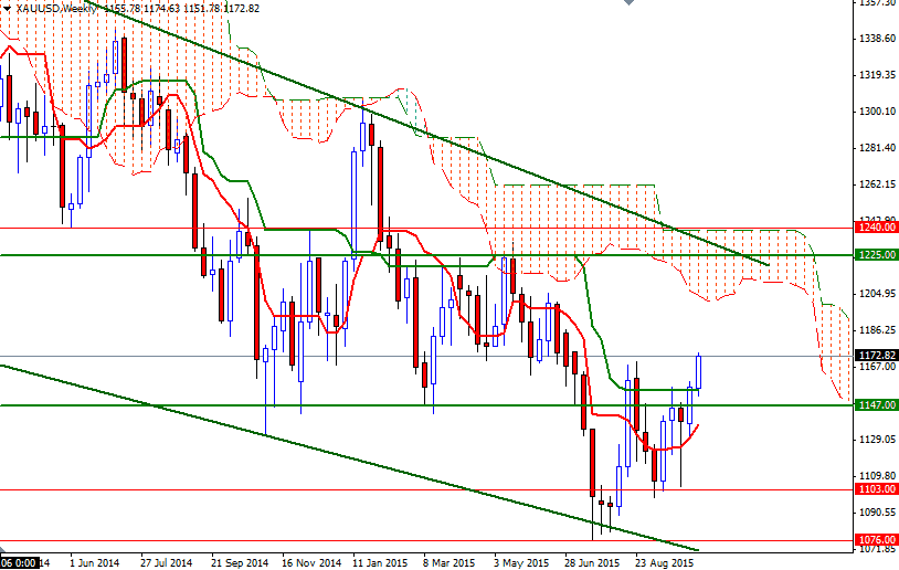Beyond 1185, there are a few significant resistance levels prior to the weekly Ichimoku cloud. However, if the bulls capture the 1185 level, we could possibly see the bulls make a run for 1192. To the downside, the initial support stands in the 1167.50 - 1165 region. If the bulls run out of gas and the XAU/USD pair falls through, then it may be possible to see prices testing the next supports at 1158 and 1152.70. Once below that, the bears will be aiming for 1146.40.