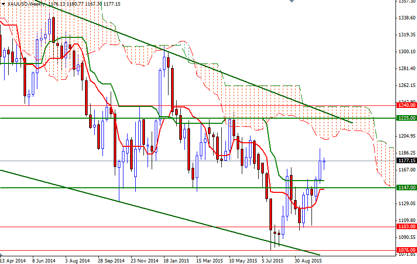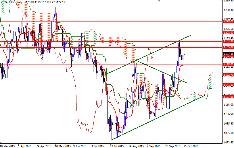 The XAU/USD is currently trading at 1177.15, slightly higher than the opening price but as you can see we are stuck in a relatively narrow range of around $20. Technically, trading above the Ichimoku clouds (on both the daily and 4-hourly charts) gives the bulls an advantage. However, 1185 will be the key level for the bulls to pass in order to challenge the bears at the 1192 battle field. Penetrating this barrier would suggest an extension to the upper trend-line of the short-term ascending channel.
