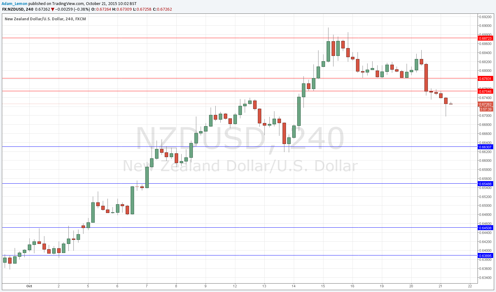 Now the pair is recovering with a slight upwards movement, but the market’s sentiment on NZD will have changed now to bearish, so the best opportunities will probably come now from short trades. The former support at 0.6783 is likely to have flipped to resistance, but even before that there is a zone beginning at the psychologically key level of 0.6750 which is likely to be pivotal.