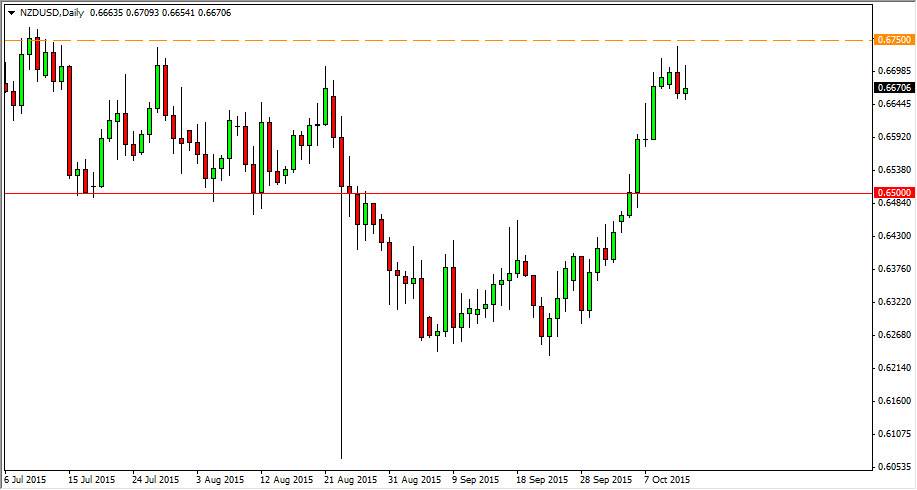 With that being said, I feel if we break above the 0.6750 level the market should continue to go all the way to the 0.70 handle. At that point in time, I am more than comfortable buying this pair as breaking above triple shooting stars is a huge deal.