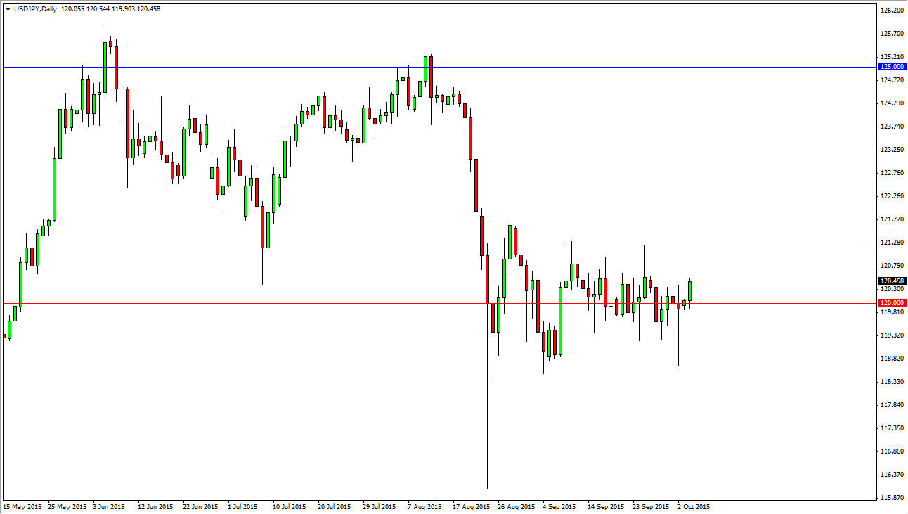 The USD/JPY pair rose during the course of the session on Monday, using the 120 level as a bit of a springboard. With that, it looks like the market is favoring the upside in general, and that every time we pullback we should continue to have buyers step into this market. On top of that, the market will more than likely move today as the Bank of Japan has an interest rate announcement and more importantly a question and answer session afterwards.