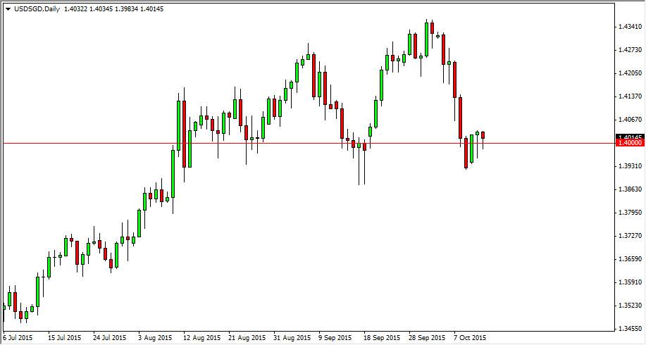 The USD/SGD pair initially fell during the course of the day on Tuesday, but ended up bouncing back above the 1.40 level. We did up forming a bit of a hammer, and that of course is a very bullish sign in general, but it is even more so when you start to see it at a large, round, psychologically significant number such as the 1.40 handle. With this, and the fact that we have seen support previously at this area, it appears that the market should start to find buyers again.