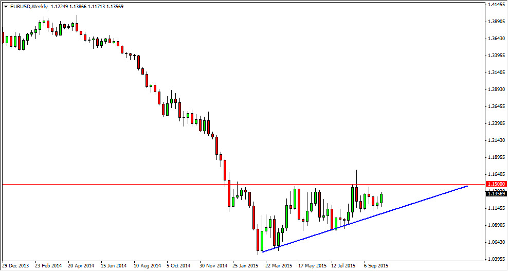 The EUR/USD pair broke higher during the course of the week, forming a fairly positive candle. With that being said, the market is overall in an ascending triangle, so I believe that once we get above the 1.15 level things could get very interesting. In the meantime though, expect a lot of volatility in choppiness with an upward bias.