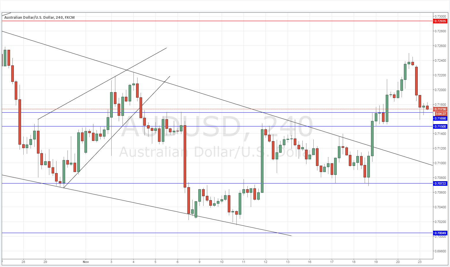 The price eventually turned back at the psychologically key 0.7250 level, and is now settling on what looks to be a nicely supportive zone that has been reliable pivotal recently.