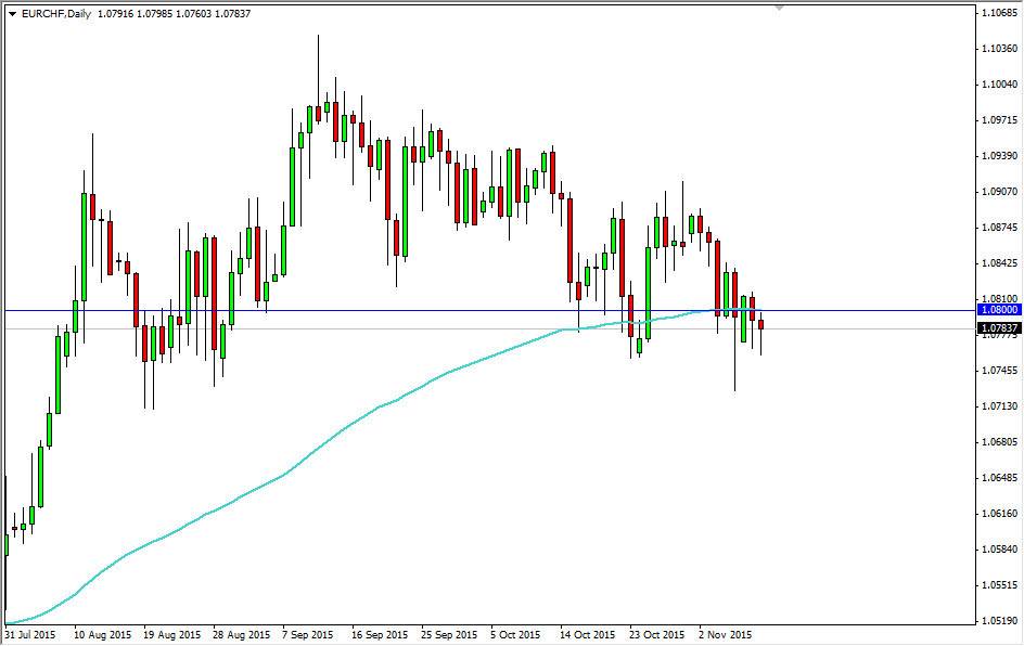 The EUR/CHF pair initially fell during the course of the day on Tuesday, as we meander just below the vital 1.08 level. This is an area that has been supportive and resistive both recently, and as a result it should continue to attract quite a bit of trading action. At this point, it appears to be offering quite a bit of support based upon the large, round, psychologically significant number, and of course the hammer that has formed for the Tuesday session. This is a market that seems to continue to find buyers in this area, and with that I have no interest in selling.