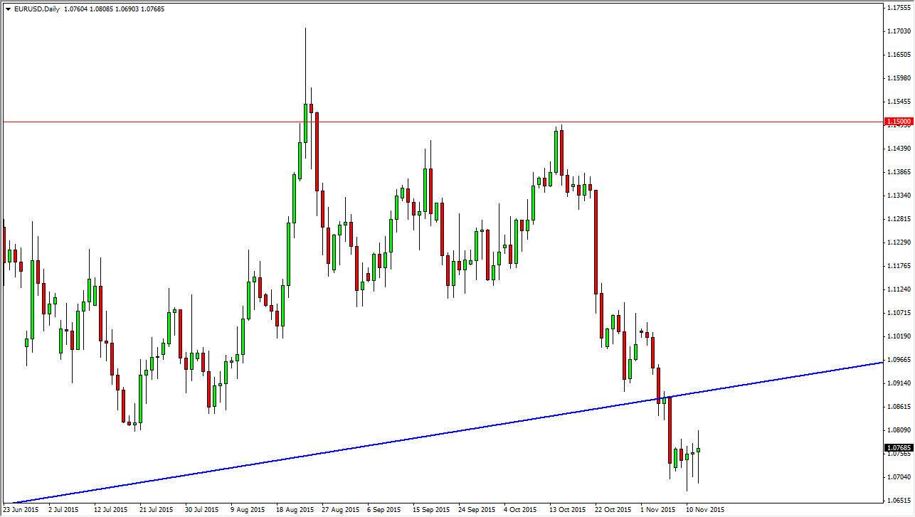 The EUR/USD pair had a fairly volatile session during the day on Thursday as we continue to bounce around the 1.0750 region. This is a market that has broken down significantly lately, and it now looks as if the 1.07 level is offering quite a bit of support. However, I also recognize that the previous uptrend line of course should be resistive now, and with that being the case, I feel it’s only a matter time before the sellers get involved again.