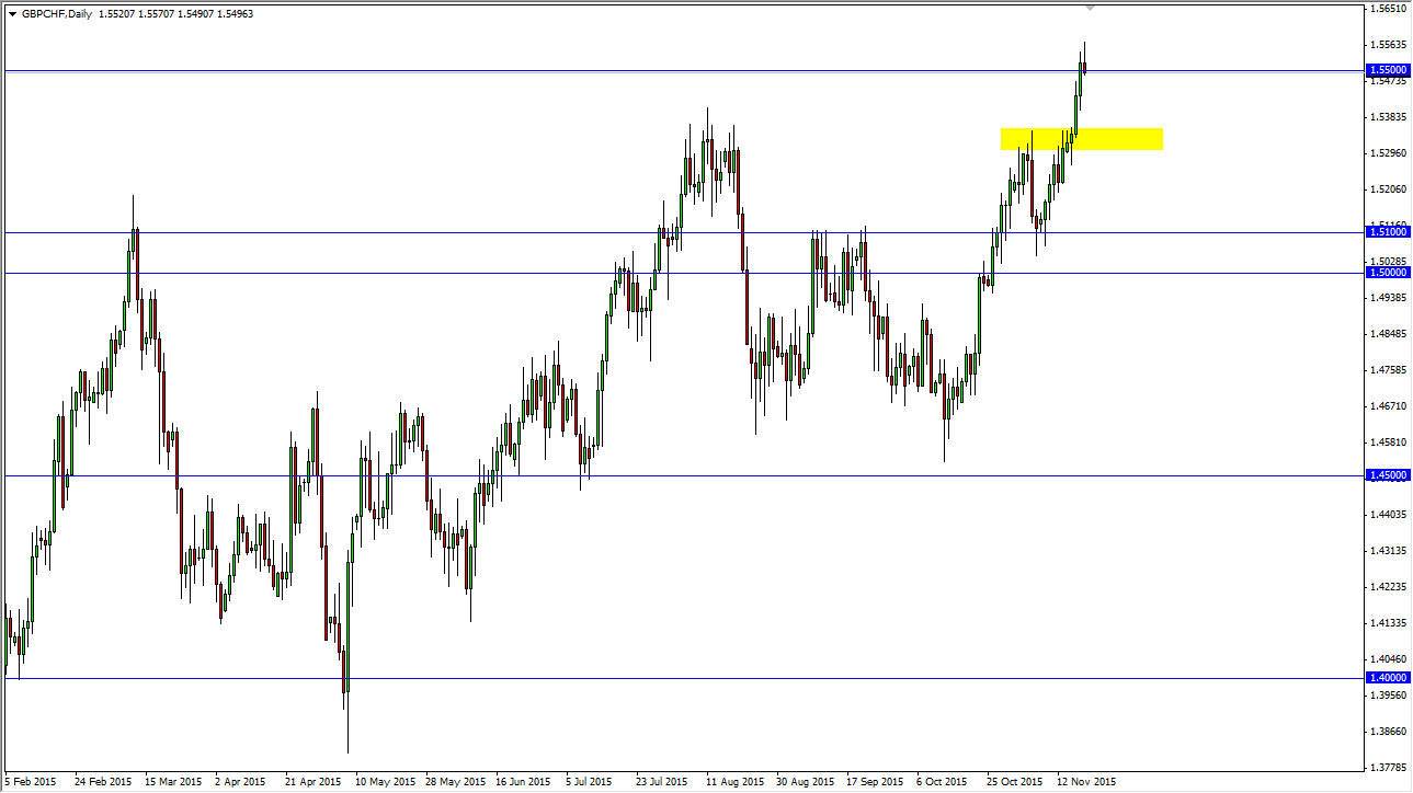 The GBP/CHF pair initially rallied during the course of the day and extended its move above the 1.55 level on Thursday, but turned around to form a bit of a shooting star. The shooting star of course suggests that we are going to pull back from here and perhaps fall as the area has offered a bit too much resistance. The breakdown below the bottom of the shooting star is a selling opportunity for short-term traders, but ultimately I believe that we do go higher. For myself, I will be selling, but I know that some of you short-term traders will more than likely try it. I think there is profit in that, but ultimately I feel it is much easier to buy a supportive candle below, somewhere near the 1.5350 level, as it was resistive in the past.