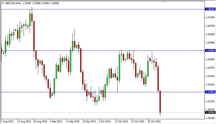 The GBP/USD pair broke down during the session on Friday, as the US jobs number was much better than anticipated. This being the case, the market broke down below the vital 1.52 level, and of course the noise and support just below there. With that, we ended up forming a very bearish candle and heading towards the one place that would offer a bit of support, the large, round, psychologically significant number. This of course was the 1.50 level and as a result I think that we may get a short-term bounce. However, that bounce is certainly not something to get excited about and I look at that as an opportunity to sell this market at higher levels. Any signs of exhaustion between here and the 1.52 level is tantamount to a selling invitation as far as I can see.