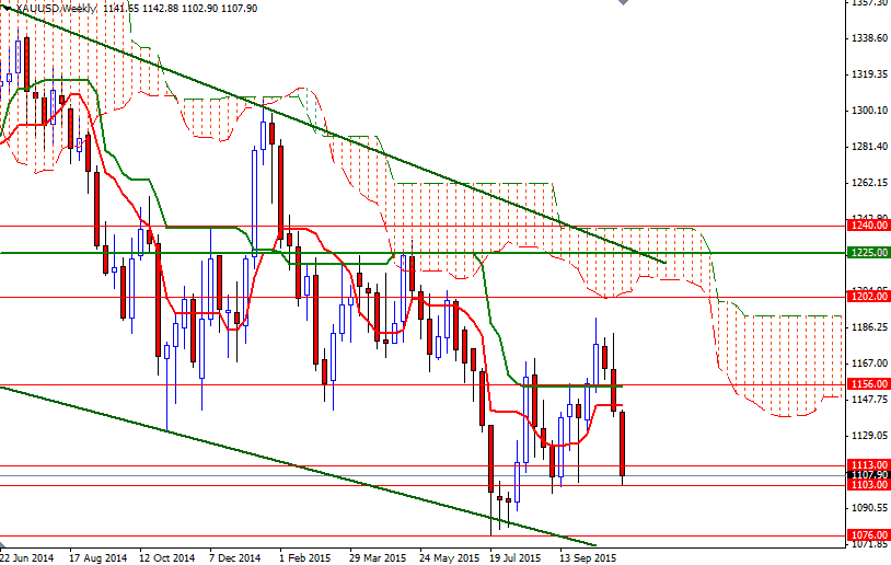 The market has been under significant amount of pressure since fresh signals by the U.S. central bank fueled expectations that policy makers will consider altering monetary policy in December. However, the timing of the first move is data dependent and because of that the official monthly jobs report will draw more attention than usual. XAU/USD just bounced off a key support level at 1103 and it looks like we are heading up to the 1113/0 region.