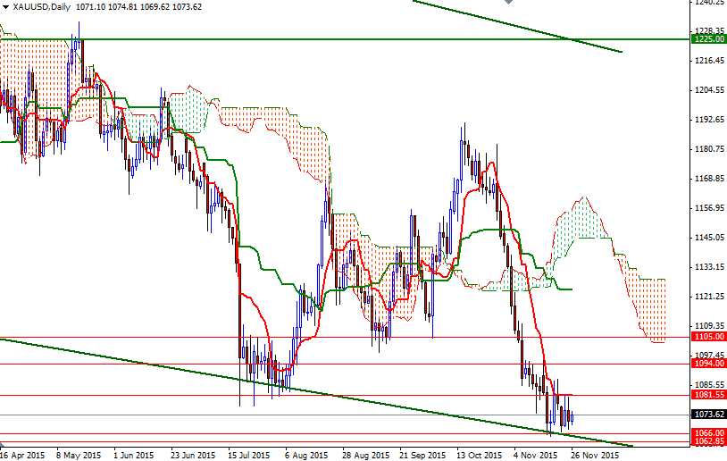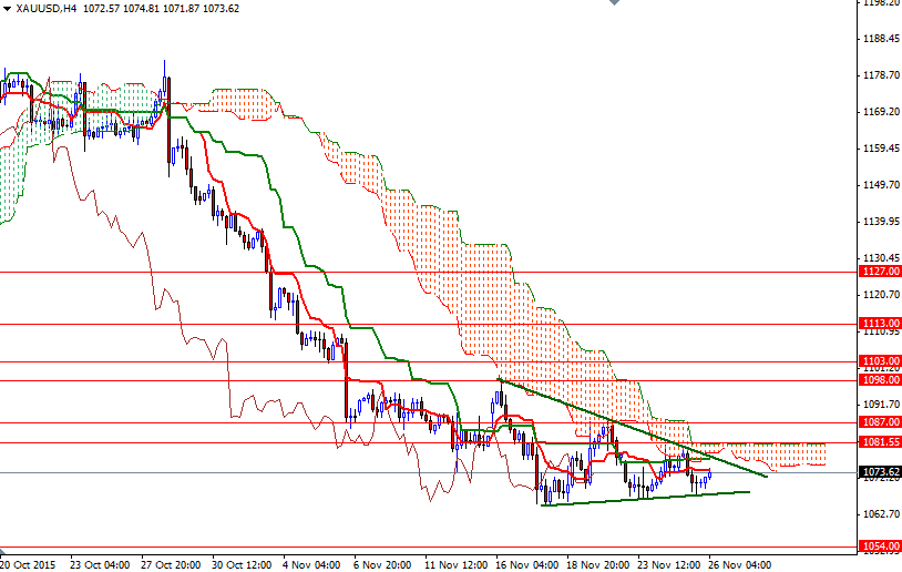 We have been locked in a tight trading range of 1066 to 1081.55 so short term traders should pay attention to these levels. Markets in the United States will be closed due to Thanksgiving holiday today and trading during the Asian session seems quite muted already. Meanwhile, we are coming closer and closer to the corner of a narrowing triangle.