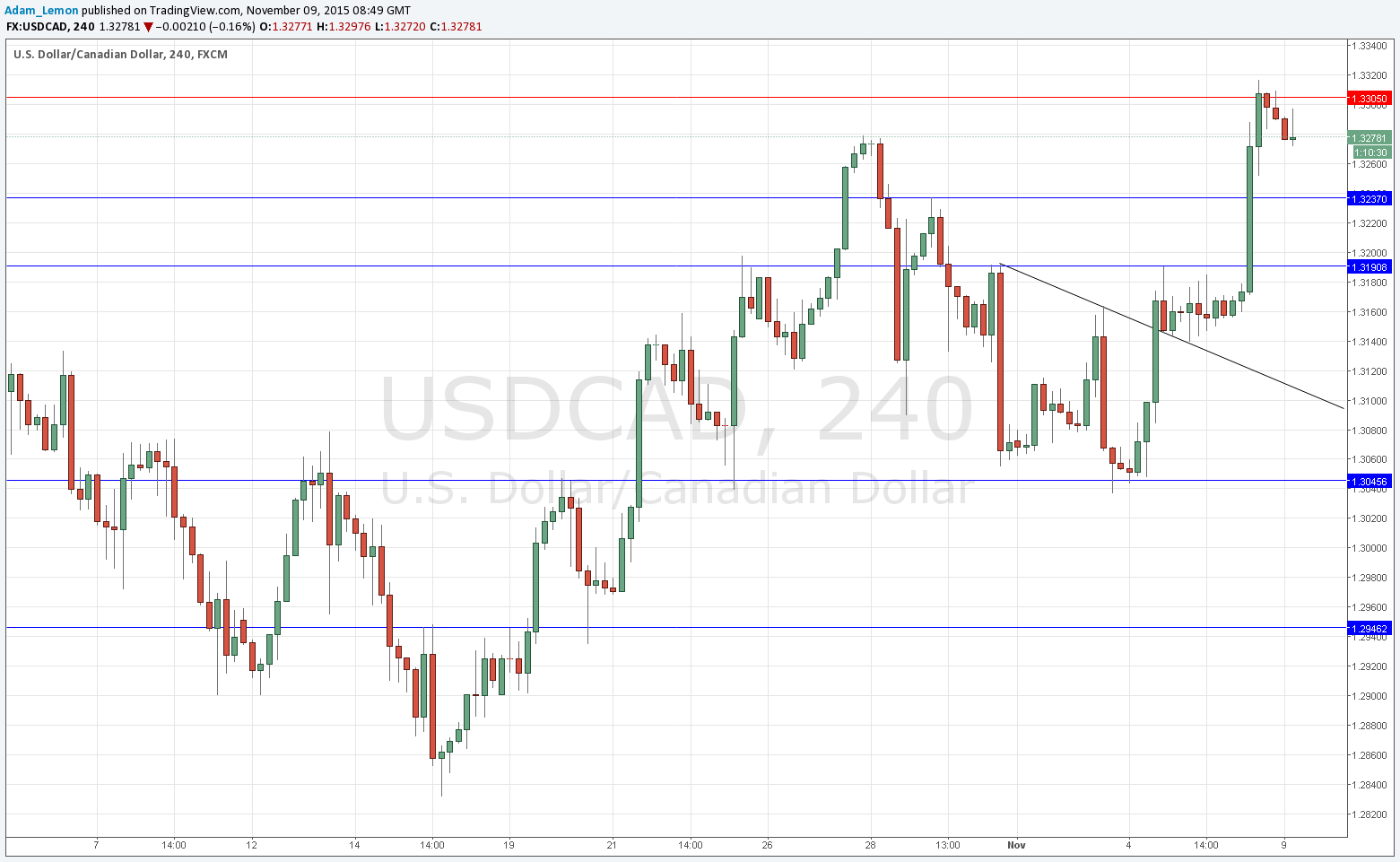 The price has run into the long-term resistance at 1.3305 and has been falling from there. As the touch is so recently I am not looking for another possible short trade from that level today.