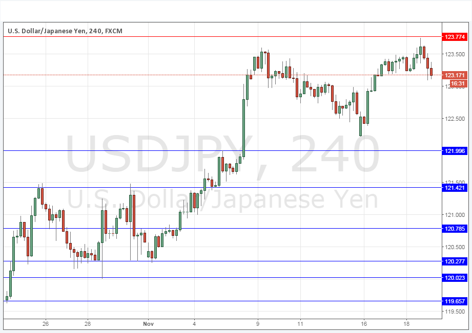 * Go short following a bearish price action reversal on the H1 time frame immediately upon the next touch of 123.77.