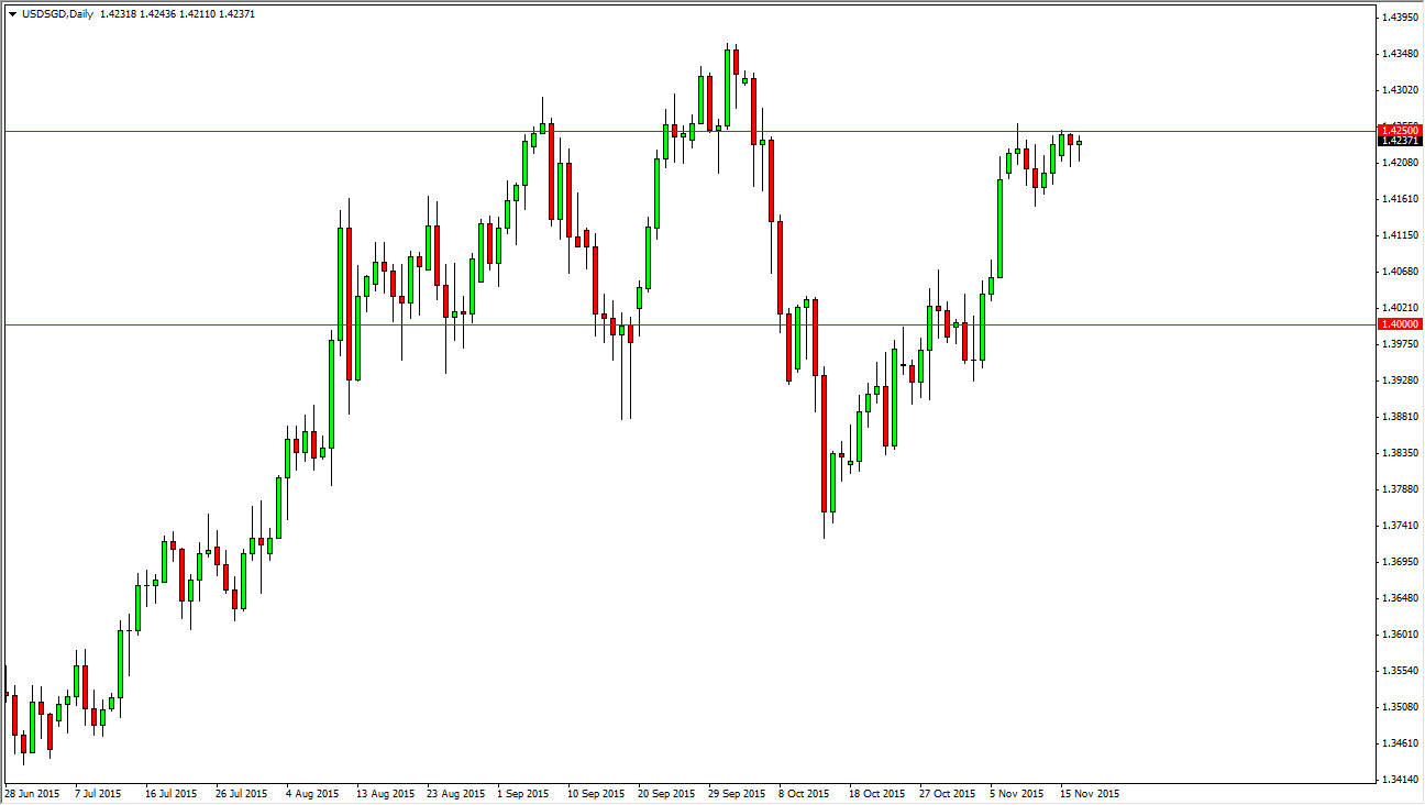 I believe at this point in time the currency pair is essentially showing what the world thinks about the North American economic prospects versus the Asian economic prospects. After all, Asia is highly leveraged to the global economic growth, and with that it makes sense that the US dollar continues to strengthen against the Singapore dollar. I think that we will ultimately reach towards the 1.45 level, which of course is a large, round, psychologically significant number.