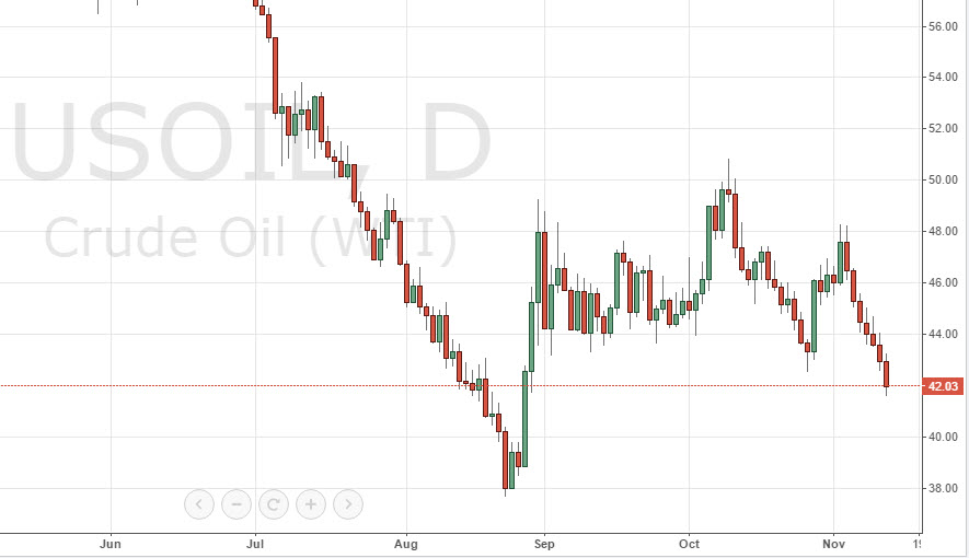 The WTI Crude Oil market fell significantly during the course of the session on Thursday, breaking down below the $42.50 level. This area was the most recent low in this market until Thursday, and now that we have made a “lower low”, it makes sense that we should continue to go even lower. At this point in time, if we break down below the bottom of the range for the session on Thursday, I believe this market will reach towards the $40 level, and then eventually the lows of the $38 level. Any type of rally at this point in time should be a nice selling opportunity, once we see short-term resistive candles.