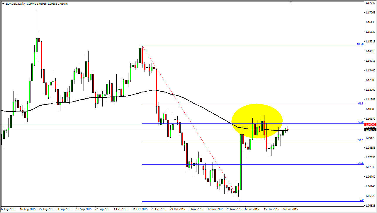 The EUR/USD pair went back and forth during the course of the day on Monday, ultimately forming a bit of a shooting star. With this being the case, the market looks as if it is struggling with the psychologically significant 1.10 level, which of course has quite a bit of resistance wrapped around it as it not only is psychologically significant as a large, round, big number, but also the fact that the 50% Fibonacci retracement level is right there. We have seen quite a bit of selling pressure in this area, and the fact that the 100 day exponential moving average is sitting right there and is also flat suggests that the market isn’t ready to go higher at this point.