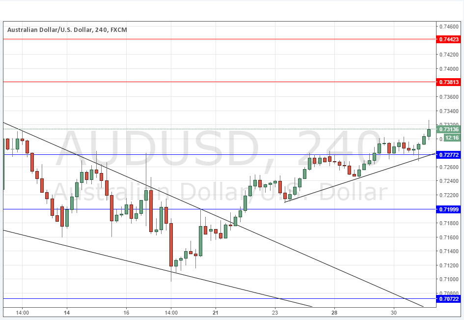 Yesterday’s signals might have produced a nicely profitable long trade off the bullish bounce from 0.7277, although there was an hourly close slightly below that level.