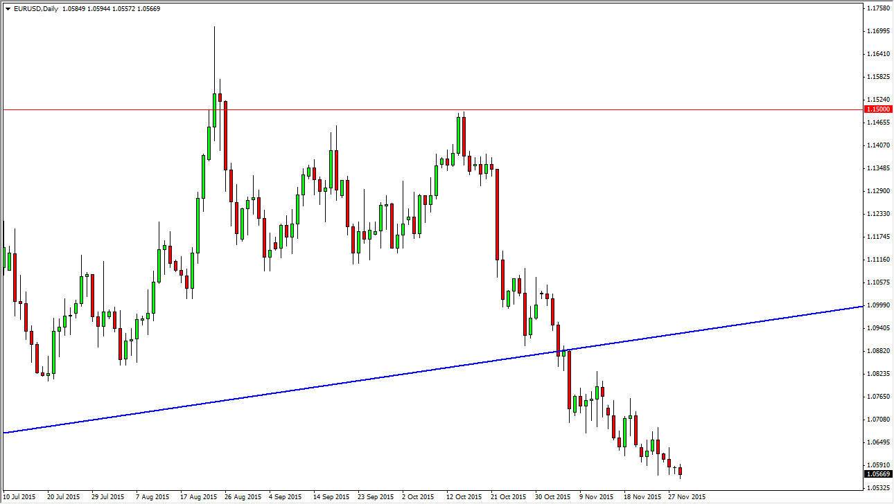 The EUR/USD pair fell again during the session on Monday, as we continue to drift lower. I have been saying for some time now that I believe this market goes down to the 1.05 level given enough time, and I think this is what we are going to see sometime this week. The real question at this point is going to be whether or not we can break down below there. Ultimately, the market should break down below there in my opinion and reach towards parity. I don’t think that’s going to happen between now and the end of the year, at least the parity part. However, we do have a couple of opportunities to break down over the course of the next couple of weeks.