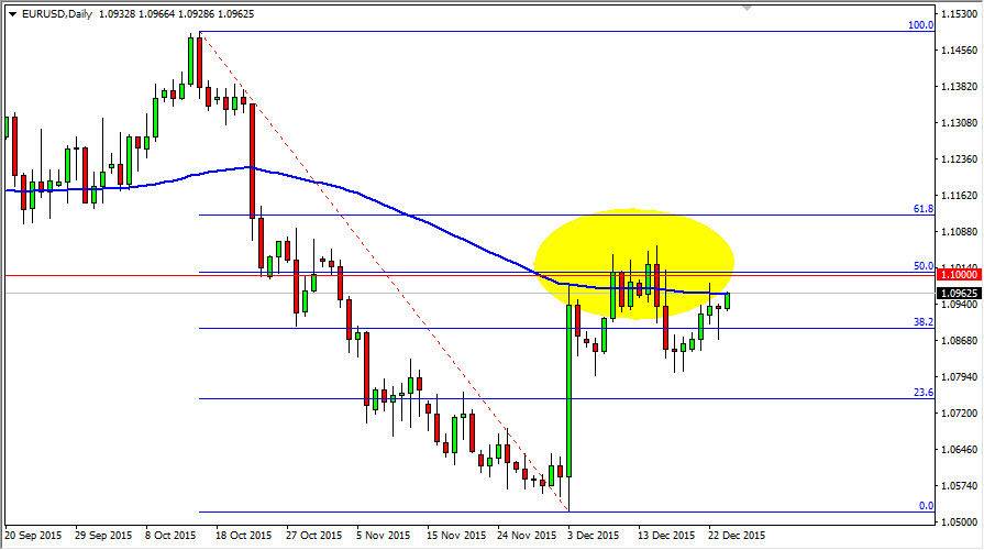 The EUR/USD pair did very little during the day on Thursday, but we did end up with a positive candle. While it wasn’t necessarily a major move, the reality is that with holiday liquidity becoming very thin, it was never going to be a massive day to begin with. Now that we have closed for the session, and of course have gotten past the Christmas holiday, we have to look at this chart as consolidation. After all, I have a yellow area that is highlighted that I believe will be very crucial for the future direction of the Euro.