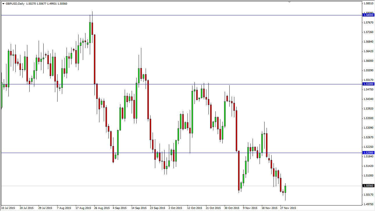 The GBP/USD pair initially fell during the course of the session on Monday, testing the 1.50 level. The 1.50 level is of course a large, round, psychologically significant number, and ultimately it is only a matter of time before people get involved when you get near there. After all, the market loves large numbers, and 1.50 is about as psychologically significant as it gets. Any rally at this point in time will more than likely try to reach towards the higher levels, somewhere near the 1.52 level. After all, that is an area that has been supportive and resistive recently, and you also have to keep in mind that the most recent rallies continue to find lower highs.