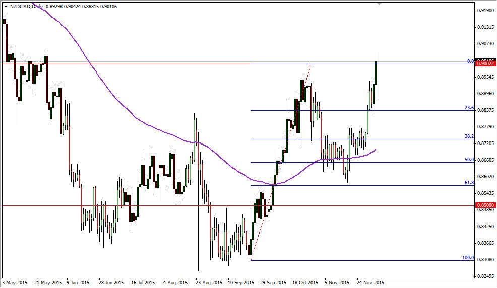The NZD/CAD pair initially fell during the course of the day on Friday, but drove much higher and finally reached the 0.90 level, an area that I have been talking about for some time now. However, we broke out above there and now it looks as if the pair is ready to continue going higher. We pulled back a little bit towards the end of the day, but quite frankly there is enough bullish momentum that we reached the 0.9050 level. Because of this, I think we are going to continue to go higher, and a break above the highs for the session on Friday is reason enough to go long. Pullbacks should represent value, and at this point in time I have absolutely no interest whatsoever in selling.