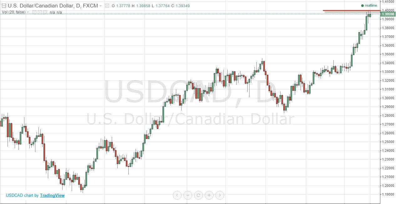 The USD/CAD pair went back and forth during the course of the Monday trading session, but quite frankly I don’t see much in the way of bearish pressure. I think this is simply going to be a reaction to the psychologically significant 1.40 handle, and that the market is simply trying to build up enough momentum to continue to go higher. The breakout recently has been very strong, so we could be a bit overbought at this point in time.