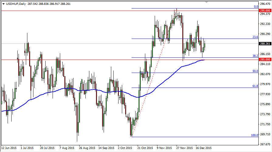 Given enough time, I do think that this market not only reaches the 295 level, but very possibly the 300 level after that. After all, the markets are bit concerned at the moment, and that normally means that the US dollar is favored. After all, the one thing that the Hungarians cannot get away from is the fact that they are surrounded by the Europeans. With fact, you have to think that there is a bit of a “knock on effect” when it comes to the Hungarian forint. I believe ultimately this pair offers nice long-term buying opportunities.