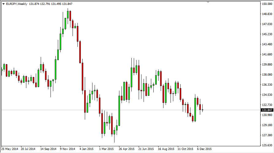 The EUR/JPY pair went back and forth during the course of the week, ultimately settling on a fairly neutral candle. With that being the case, I feel that the market is simply grinding its way lower, perhaps reaching down towards the 130 handle. I would favor selling in this pair over buying, but either way I recognize that there will be a lot of volatility.