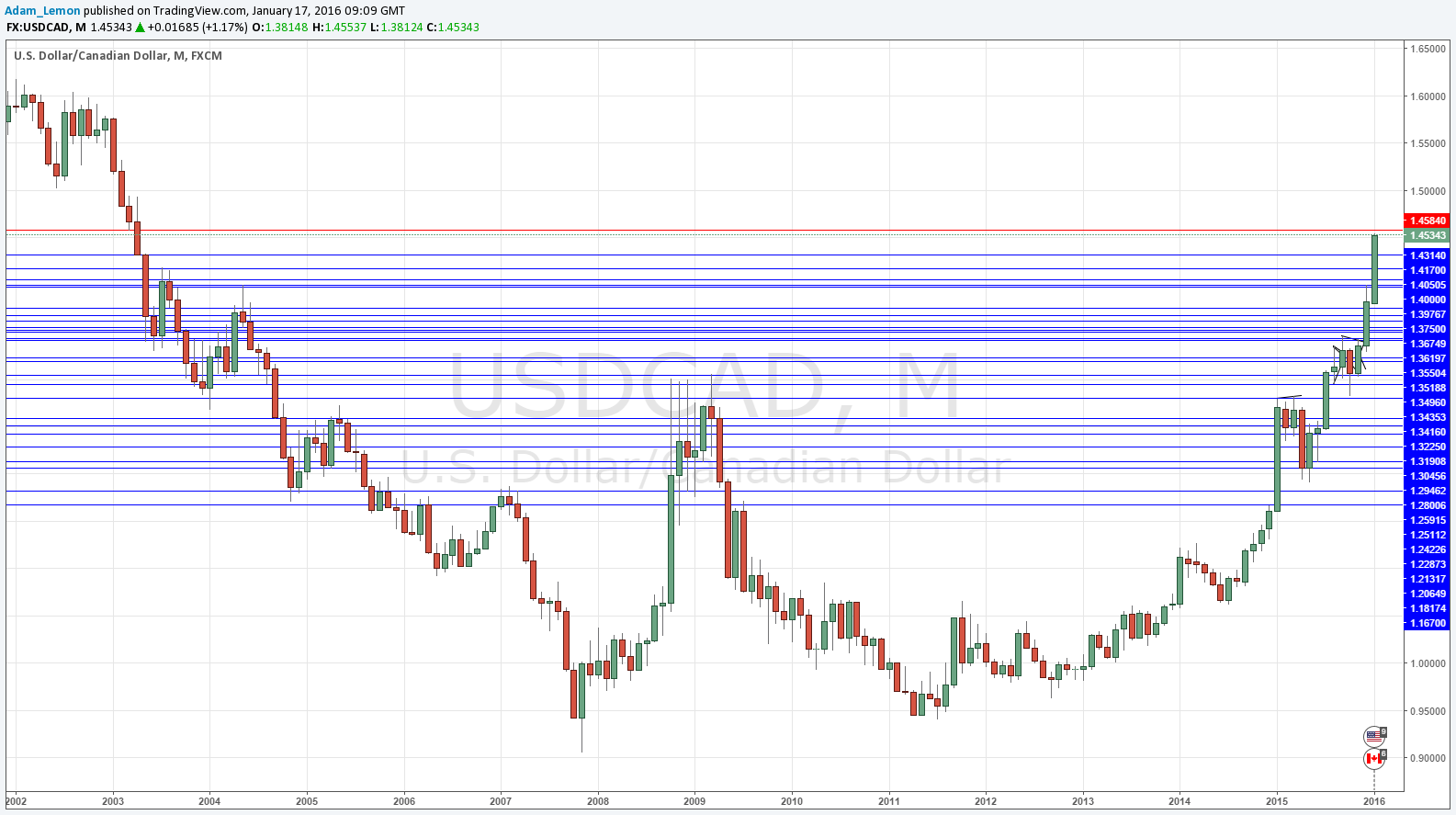 Canadian fundamentals are poor and the price of oil, with which the currency is very highly positively correlated, continues to reach new multi-year lows, trading below $30 per barrel late last week. Although there has been something of a recovery in recent economic data releases, the economic picture going forward is far from rosy. The Bank of Canada recently stated that it would theoretically consider negative real interest rates should another financial crisis arise, which probably contributed to the latest round of weakening of the currency.