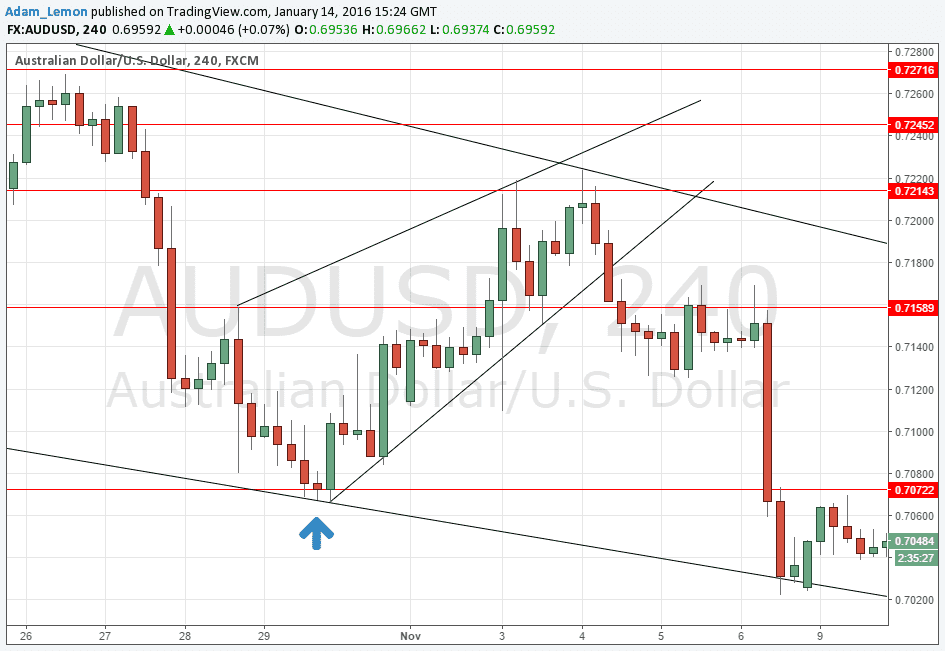 This day I suggested looking for a long off a bullish bounce from the anticipated support at 0.7072. This level worked very well as support and in fact is still in use as a crucial level on my charts today. You can see that the price turned right off the level and rose a maximum of 150 pips: