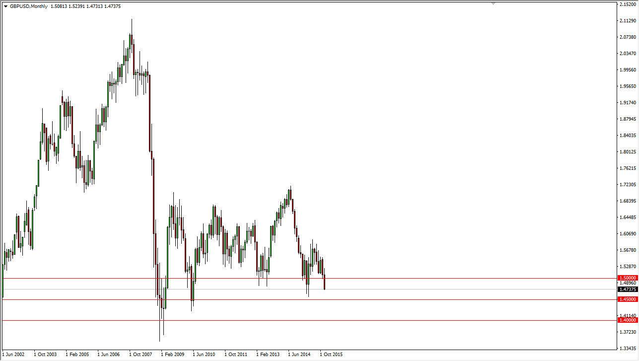 I think that the Federal Reserve will have a part to play in this, and as a result there are several things it could happen. However, I think that the Federal Reserve may find themselves in a situation where they cannot raise interest rates quickly enough to pacify more US dollar strength, at least against some of the other currencies that may not be from economic conditions that are as bad as people believe at the moment. I think that the United Kingdom is one of these rare exceptions, so it’s only a matter of time before the markets realize that the British pound is oversold. I don’t think that this is going to happen anytime soon, and I expect a fairly quiet yet negative beginning of the year. By the time the market closes at the end of 2016 though, I fully suspect that this pair will be back above the 1.50 level. However, I think that it is going to be difficult to hang onto any long-term trade until at least March.