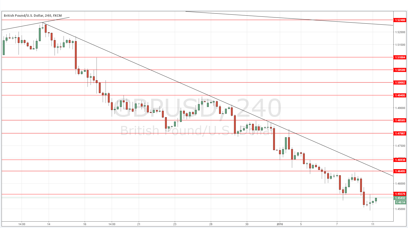 We got a meaningfully bullish bounce yesterday off previous multi-month lows, but this eventually was broken to the downside on Friday as a new 5 year low was made by this pair. However it seems we are now coming up from the big round number at 1.4500 and at the time of writing it seems we are heading for at least 1.4557 and possibly beyond that. The downwards trend remains strong so pullbacks to these areas should be good opportunities to look for shorts.