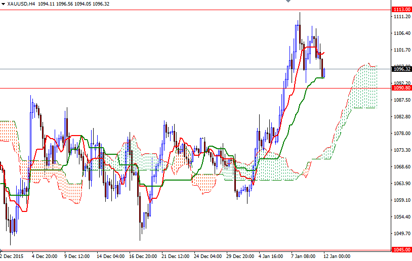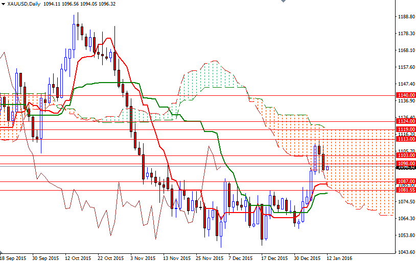 Gold prices ended Monday's session down $9.78, extending their losses to a second straight session, as strength in the U.S. dollar and a recovery in equities weighed on the market. The XAU/USD pair have advanced nearly 4.5% since the market bounced off the support around the $1047 level and is currently trading just below the $1099.50-1098 resistance area. Since the beginning of the new year, one beneficiary of the stock market sell-off has been gold. Gold historically has always been a safe commodity in times of turbulence but safe-haven gains tend to be short-lived and the long-term outlook remains relatively unfriendly for the precious metal, with the U.S. Federal Reserve set to raise interest rates further this year.