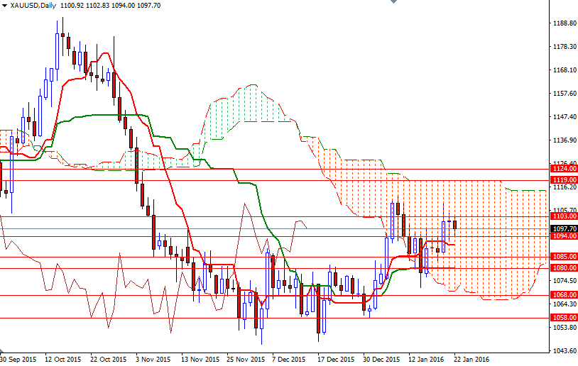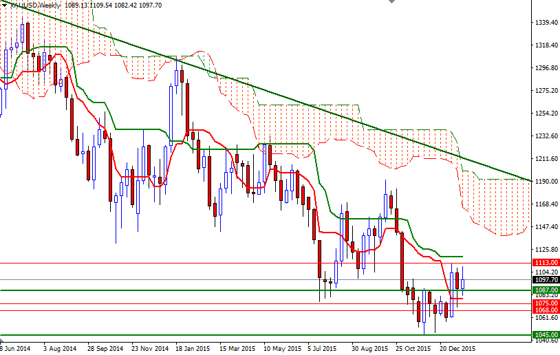 On the other hand, the XAU/USD pair has been slightly bullish since the market left a two-month long consolidation period roughly between 1085 and 1045. The market is moving above the 4-hourly Ichimoku cloud and the Tenkan-Sen (nine-period moving average, red line) and the Kijun-Sen (twenty six-period moving average, green line) lines are positively aligned on the daily and 4-hourly charts. The first hurdle gold needs to jump is located in the 1105.50 - 1103 region. The market will need to pass through this region in order to test the next resistance levels at 1113 and 1119. If the bears take the reins and drag prices below 1094, I would expect prices to revisit the 1091.88-1090.47 support. Breaking below that would suggest that the market is getting ready to challenge 1086.41-1085, and possibly 1080.