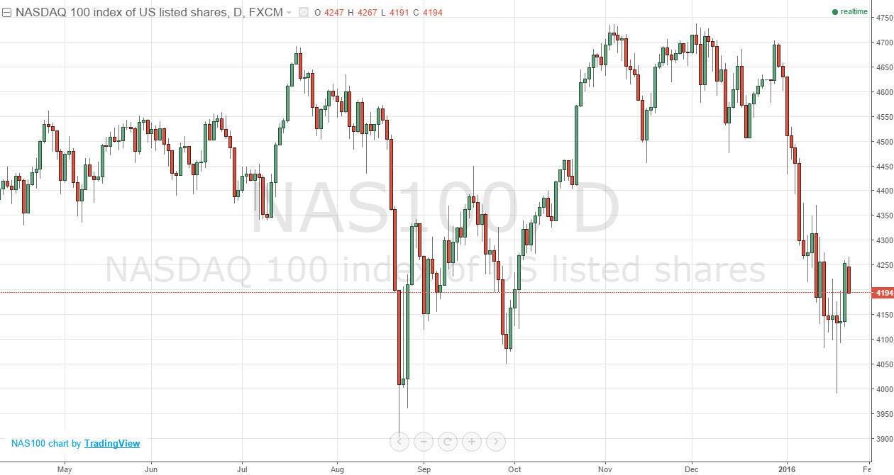 Look for the NASDAQ 100 to follow most of the stock markets around the world, and if we rise during the day the NASDAQ 100 could find itself rallying. However, if we break down in other markets around the world, the NASDAQ 100 will more than likely follow that as well, and trying to reach back towards the 4000 handle. The 4000 handle was of course a large, round, psychologically significant number, but it is also supportive based upon previous action as well. With that being said, I believe that the short-term selling will probably continue, but sooner or later were going to have a serious fight on our hands.
