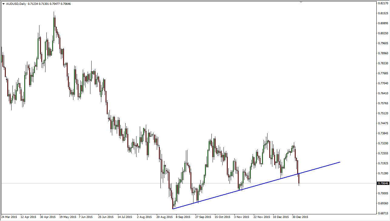 This pair is a little bit more clear and what’s going on in my opinion. After all, the uptrend line that I’ve been paying so much attention to has been absolutely broken, and as a result it looks like we are going to try to test the 0.70 level. I think that we go below there as well, probably trying to reach the 0.69 level which was the most recent major low. As long as we can stay below the uptrend line that we have broken on the chart, I don’t see any reason to buy this pair at all. In fact, I think that short-term rallies should be nice selling opportunities going forward for most traders.