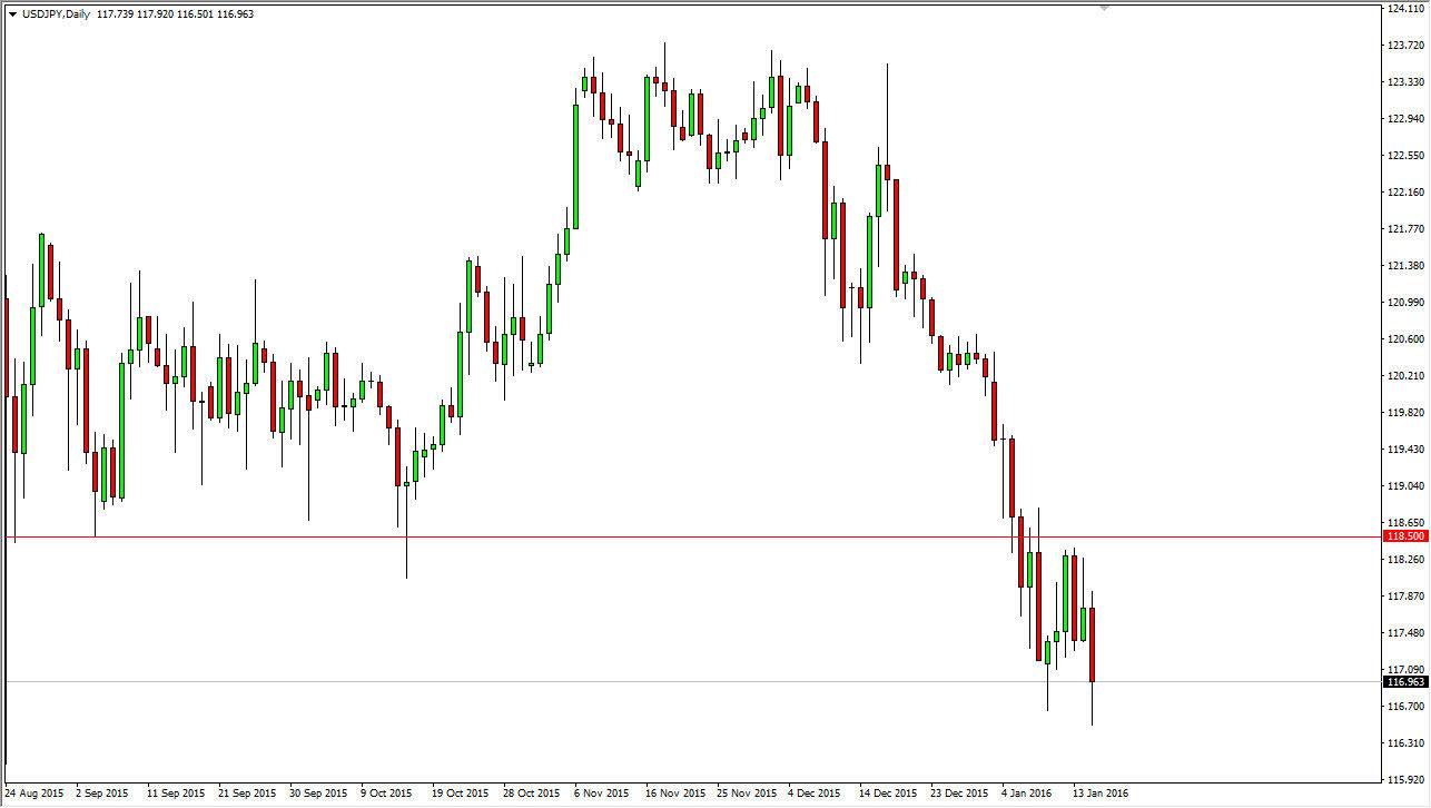 This pair tends to be very highly influenced by the S&P 500 as well, so keep an eye on that particular market. Right now, it looks as if we are going to continue to see bearish pressure in that market, and with the general malaise when it comes to risk assets around the world, I believe that we will more than likely see the 115 level tested below.