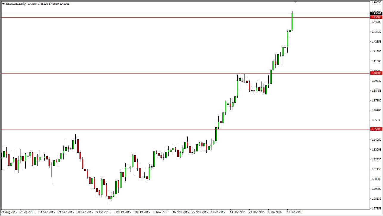 The USD/CAD pair broke higher during the course of the day on Friday, finally cracking above the 1.45 handle. That’s a very bullish sign obviously, as it is a large, round, psychologically significant number, and we have seen the oil markets fall. After all, as long as the oil markets fall, I feel that the Canadian dollar will continue to come apart.
