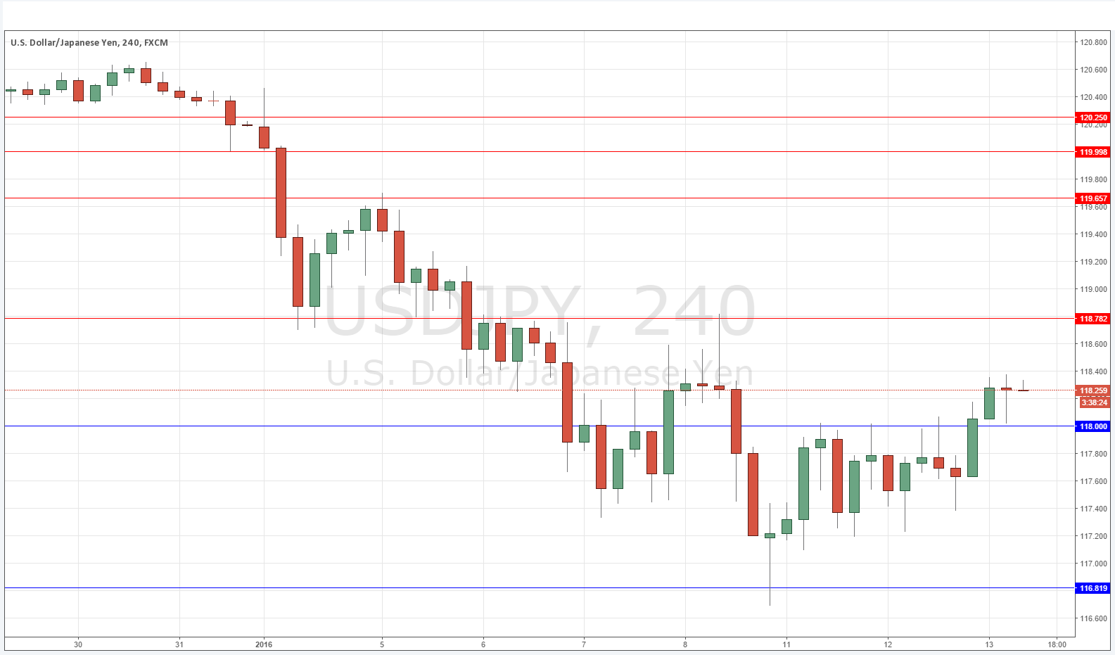 * Go long following a bullish price action reversal on the H1 time frame immediately upon the next touch of 118.00.