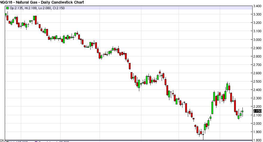 The natural gas markets continued to bounce a little bit during the session here on Thursday, but it struggled at the $2.20 level and pulled back a bit. By forming a fairly neutral candle, it looks as if the rally is starting to run out of steam a little bit. I would fully anticipate this, because we are most certainly in a downtrend. I think that it is only a matter time before we drop down to the $2 level, as we have quite a bit of interest at that level. The downtrend line that had been keeping this market down before is still there, so it’s only a matter of time before the sellers get involved in my opinion. It is not until we break above that downtrend line that I would consider buying this market.