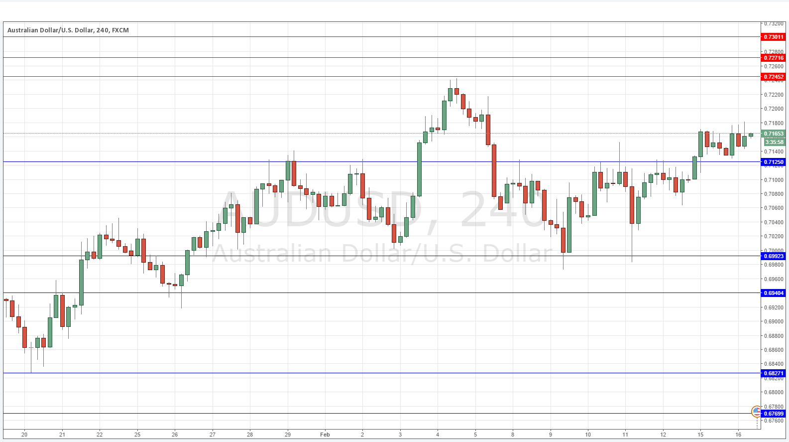 I wrote yesterday that this pair was looking a little bullish but not really going anywhere. This situation persists as it continues to grind upwards slowly. There is a new development – we have quite clear probable support not far below now at 0.7125 which might be exploitable, but do so carefully.