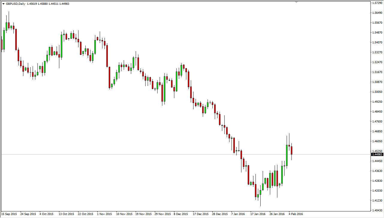 On the other hand, if we break above the top the shooting star from the Thursday session, I feel that the British pound goes much higher and probably goes towards 1.48, and then eventually the 1.50 level. I have no interest in buying this market until we break above that shooting star, and believe that short-term selling opportunities will present themselves again and again on signs of exhaustion. This is a market that should continue to favor the US dollar in general as there is a lot of economic uncertainty out there, and of course we have had such a negative trend for quite some time.