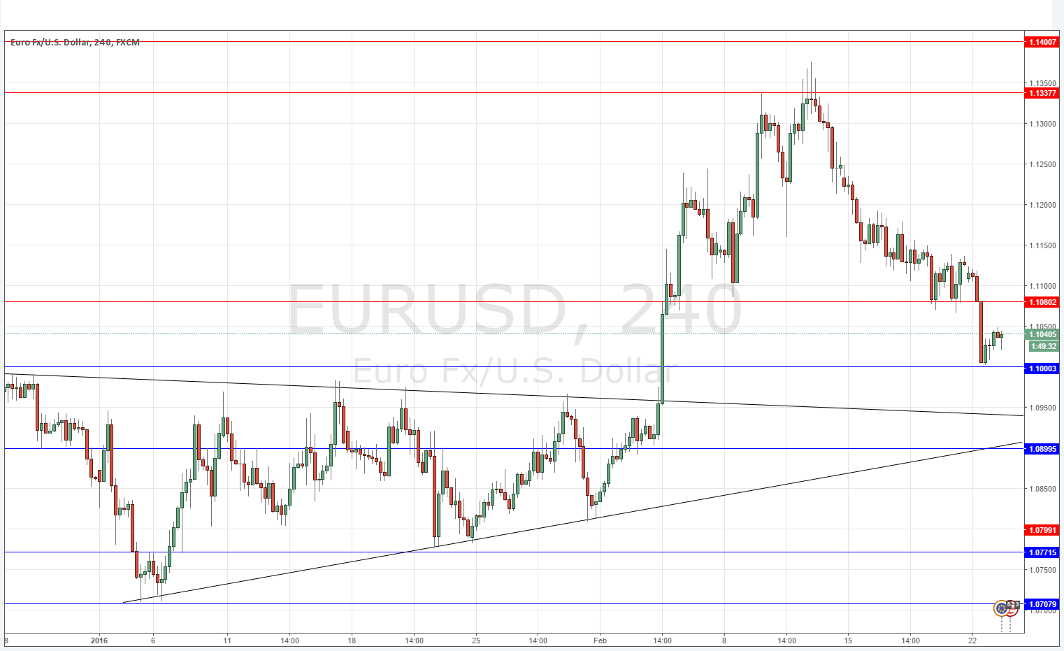 Yesterday’s signals correctly forecasted support at 1.1003 to the pip, but the price action that occurred there was not clearly bullish so this probably would not have produced a long trade.