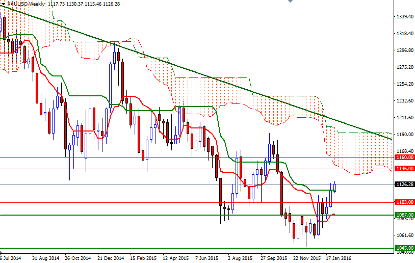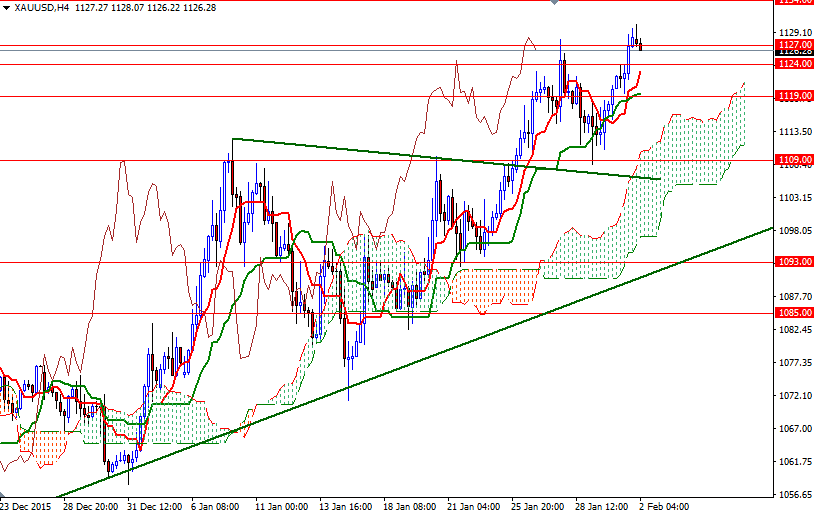 The XAU/USD pair traded as high as $1130.37 earlier in the Asian session but found some resistance and started to retreat. It looks as if the market is heading back to the $1124 level. The hourly Kijun-sen (twenty six-period moving average, green line) and the top of the Ichimoku cloud on the 30-minute chart converge in the same area so it should provide some support.