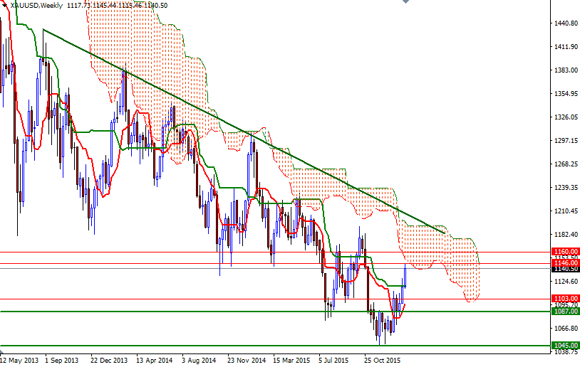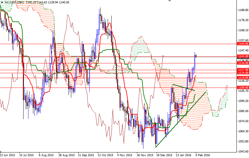 Not surprisingly, breaching the 1132/1 area drove up prices and as a result the market reached the fist upside target (1160/46) that I mentioned in both the quarterly and monthly analysis. XAU/USD is trading at 1140.50, slightly lower than the opening price of 1142.25. Focus now turns to the Labor Department's comprehensive non-farm payrolls report which will be released on Friday. The short-term charts have been pointing out higher prices since the market climbed above the 4-hourly Ichimoku cloud after establishing an ascending trend-line but I would advise caution at this point.