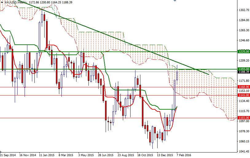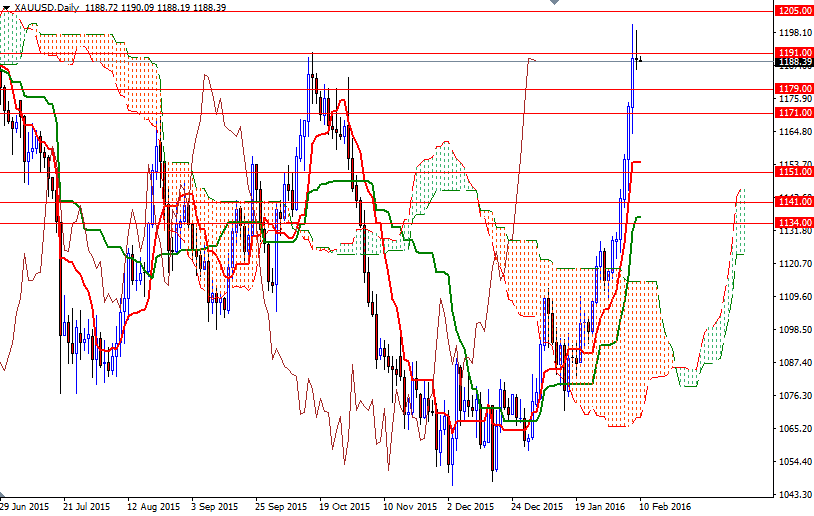 Gold snapped seven consecutive days of gains as investors grew cautious ahead of Federal Reserve Chair Janet Yellen's appearance before the House Financial Services Committee. Failing to sustain a push above the $1193/1 region also weighed on the market. The XAU/USD pair tried to hold beyond this barrier yesterday but stalled as some investors used this opportunity to cash in gains from a recent rally to a 7-1/2-month high. As a result, prices closed just below the $1191 level.